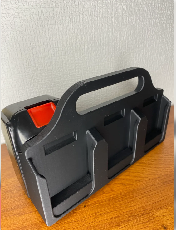 Denne batteribæreren har plass til 6 Makita 18V-batterier og gjør det enkelt å samle batteriene på ett sted – enten i verkstedet, bilen, boden eller på jobb.