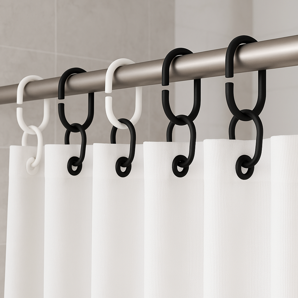 📌 Merk: Ringene er beregnet til vanlig bruk på dusjforheng. De bør håndteres forsiktig og tåler ikke kraftig vridning eller unødvendig bøying.